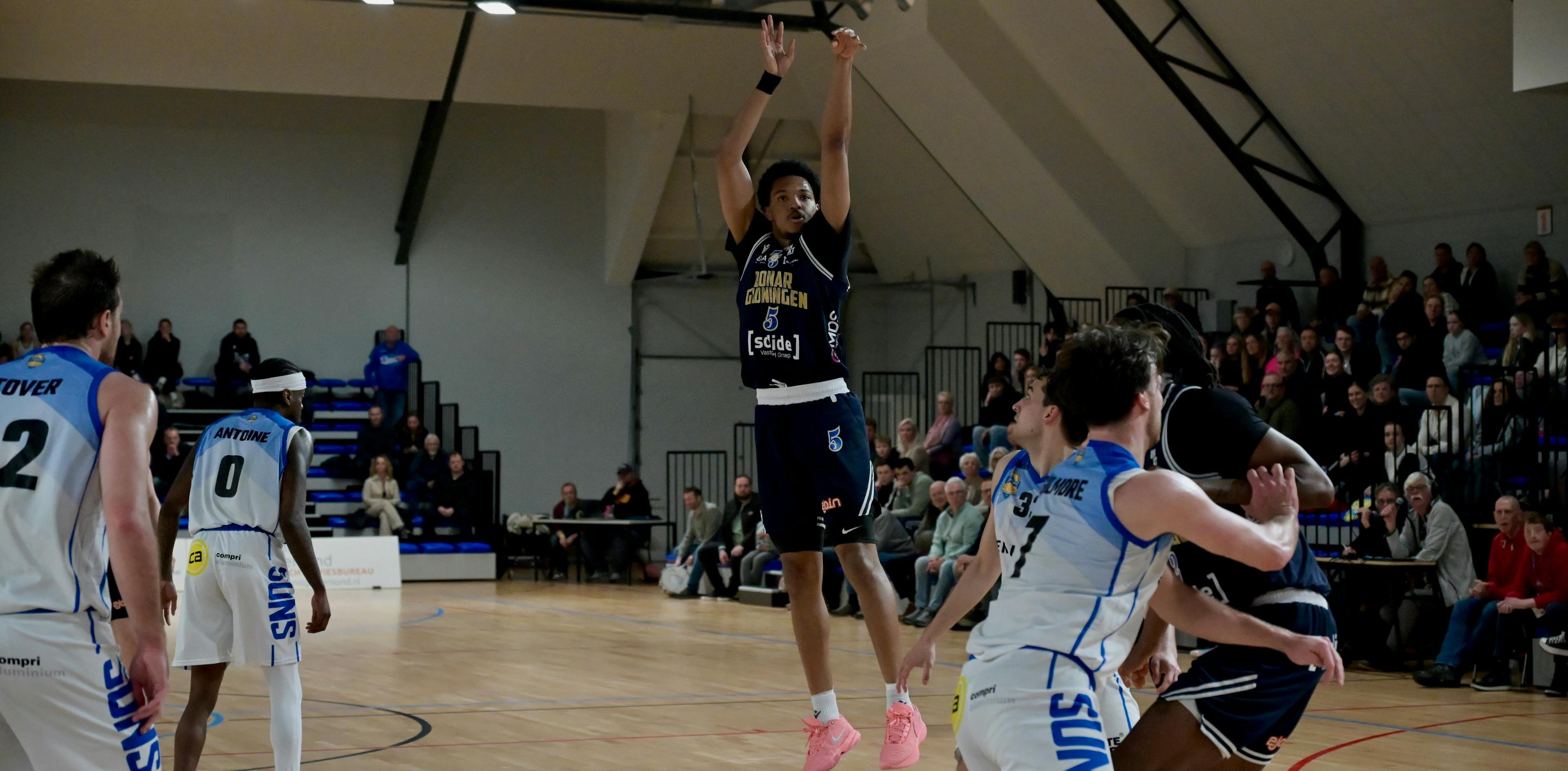 Na de zware inspanning van afgelopen dinsdag waar Donar Groningen de volgende ronde in de ENBL bereikte, moest er vanavond in Den Helder afgerekend worden met de Den Helder Suns. Vooraf al geen makkelijke opgave, maar met de wedstrijd van twee dagen geleden nog in de benen leek het erop dat de spelers niet de energie hadden om er vol in te gaan.